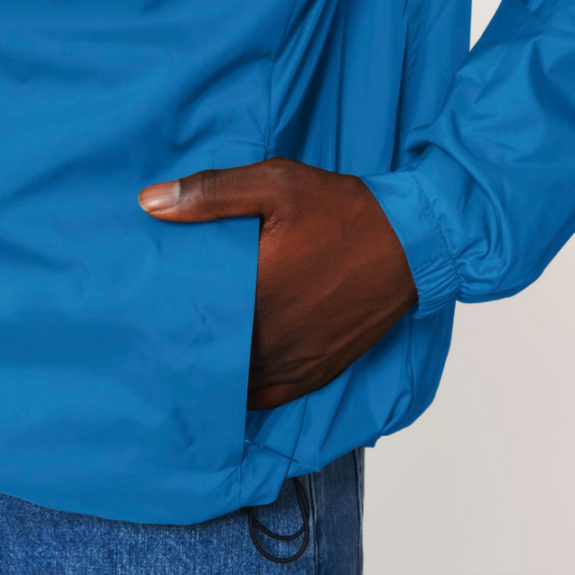 Tecido principal: Plain weave, 100% poliéster reciclado, fluorine-free dwr, 75 gsm