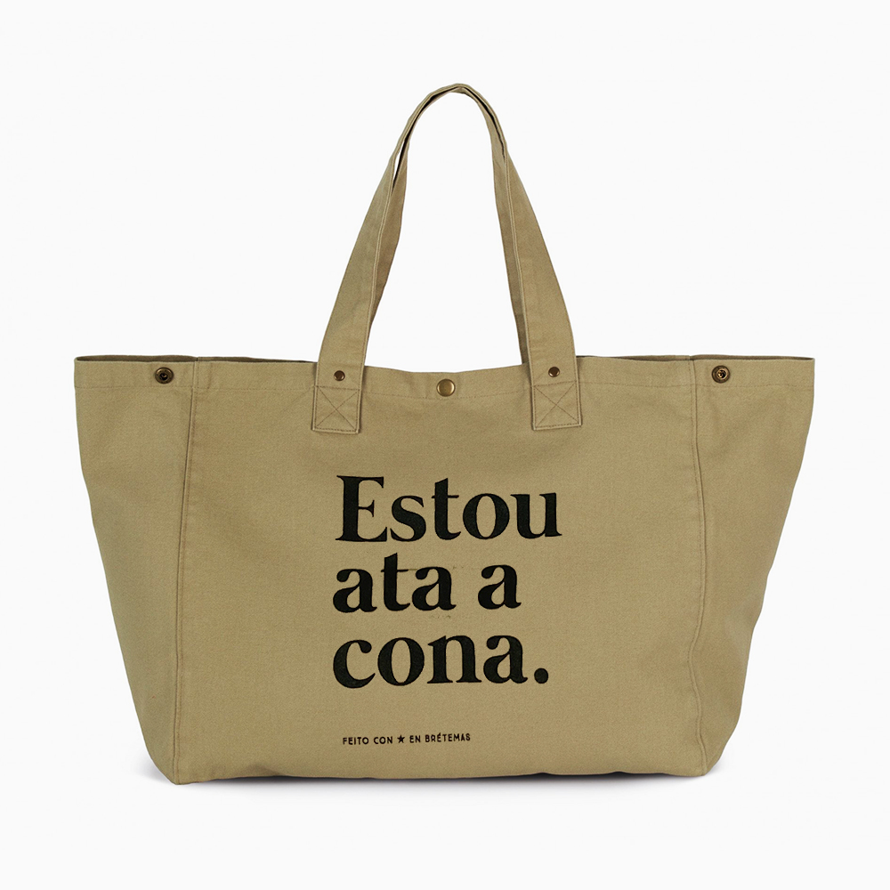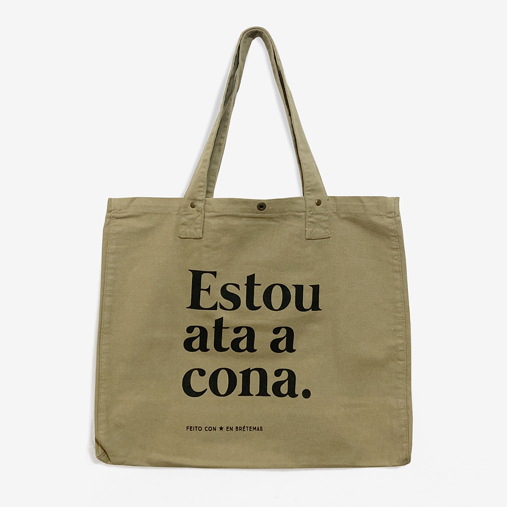 Saca grande lona algodón “Estou ata a cona” / oliva
