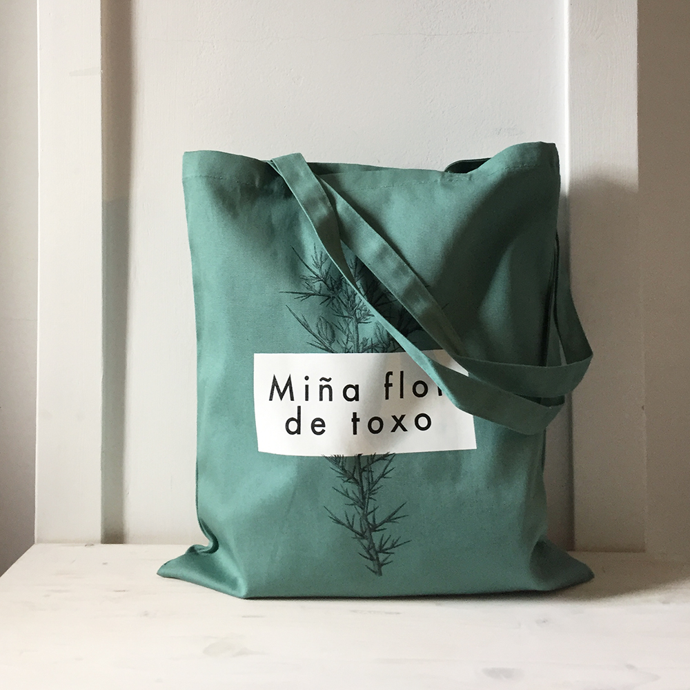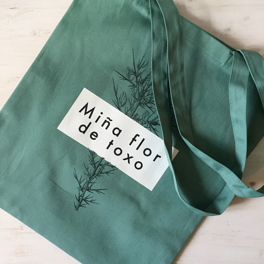 Saca de tela “Miña flor de toxo” / totebag / cor menta / orgánica