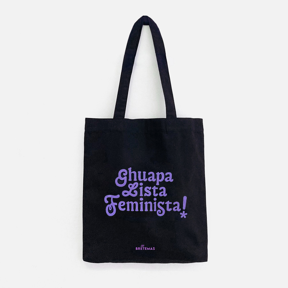 Saca “Ghuapa, Lista, Feminista!” / negra / algodón orgánico